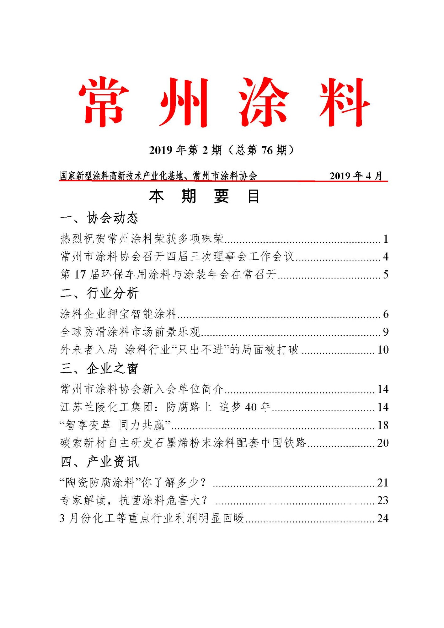 常州涂料簡(jiǎn)報(bào)2019年第2期(總第76期).pdf