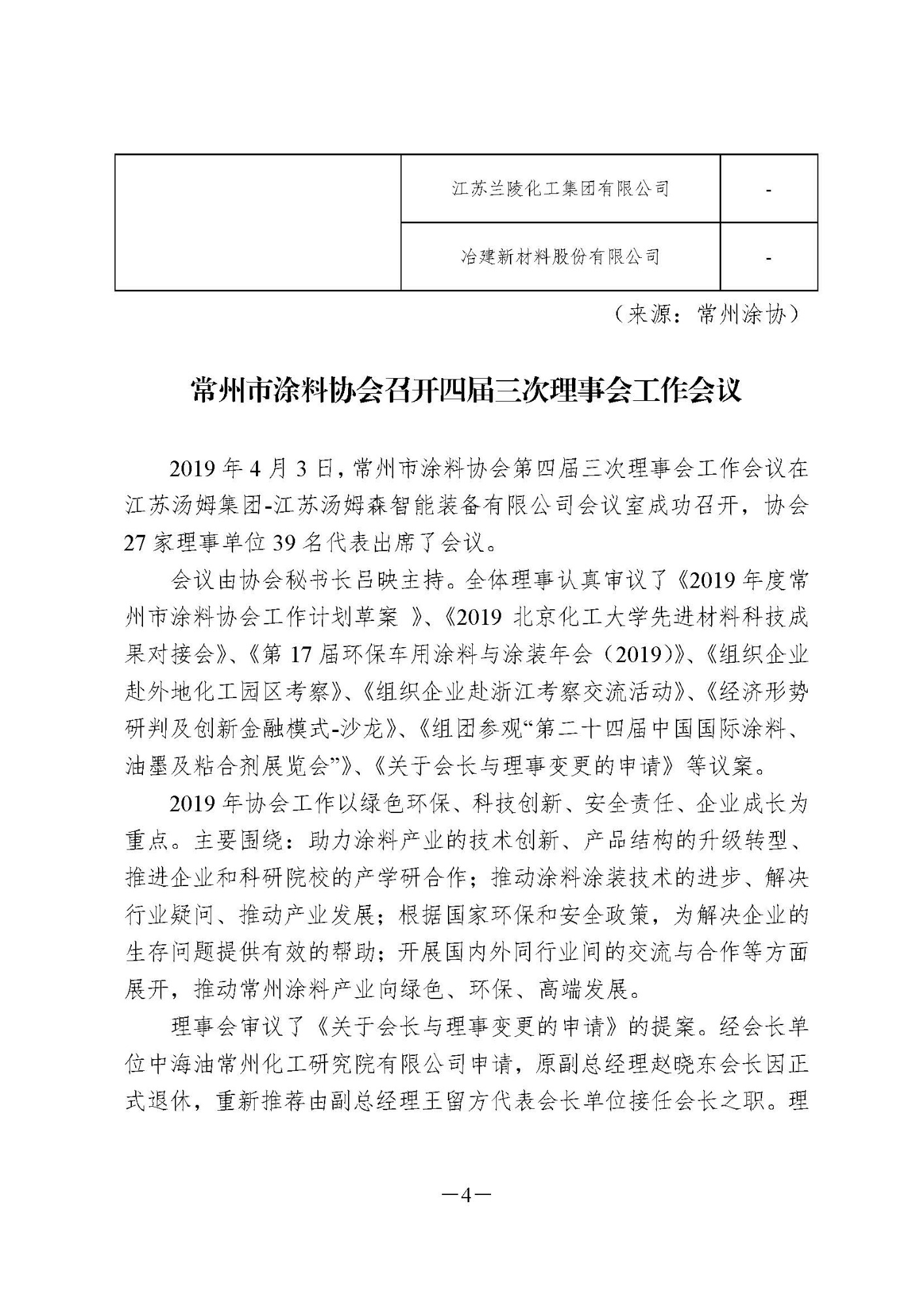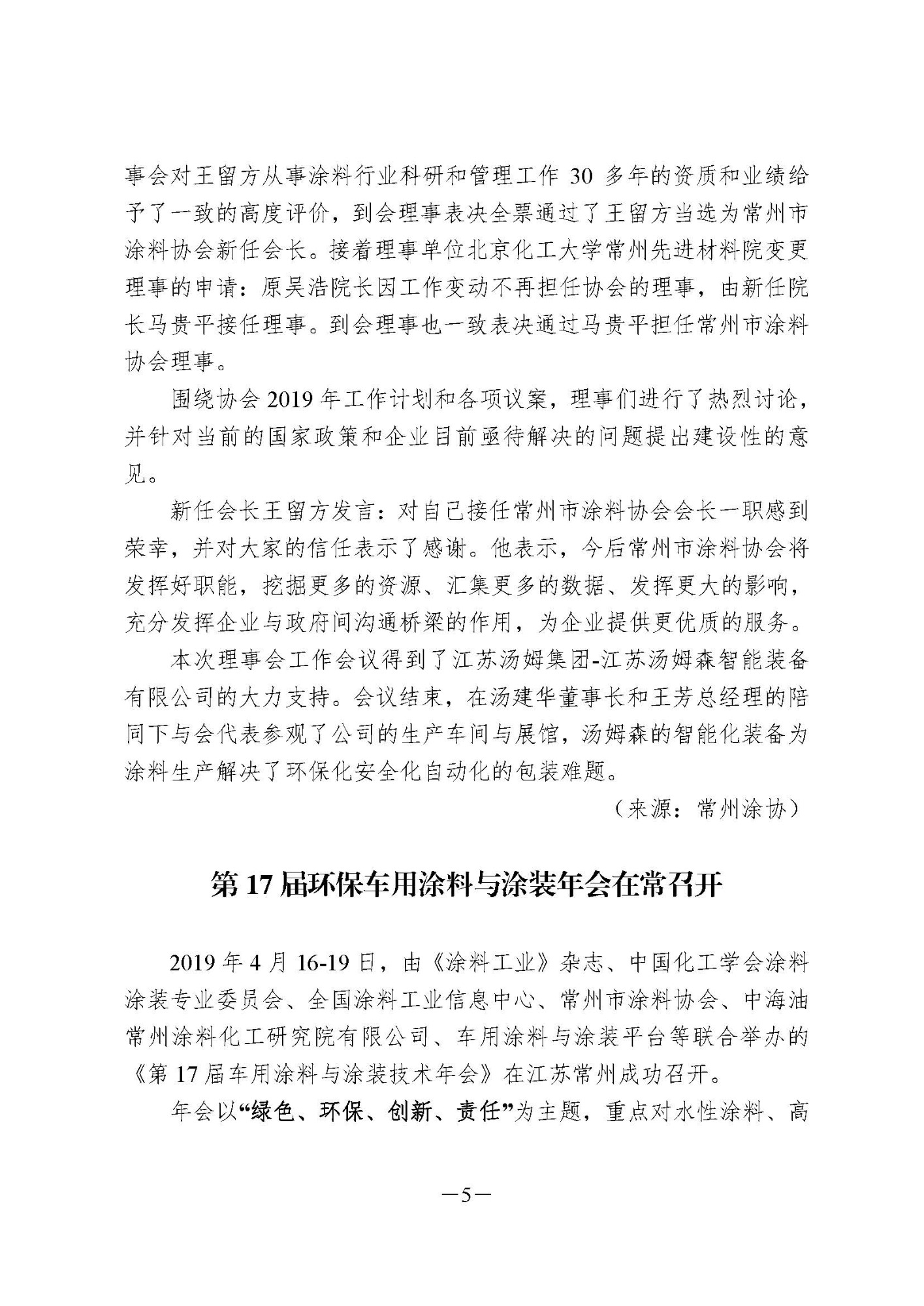 : 常州涂料簡(jiǎn)報(bào)2019年第3期(總第77期)