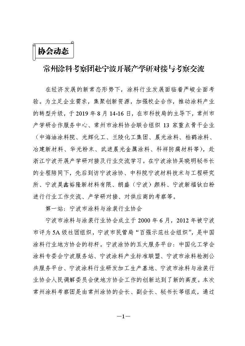 : 常州涂料簡(jiǎn)報(bào)2019年第3期(總第77期)